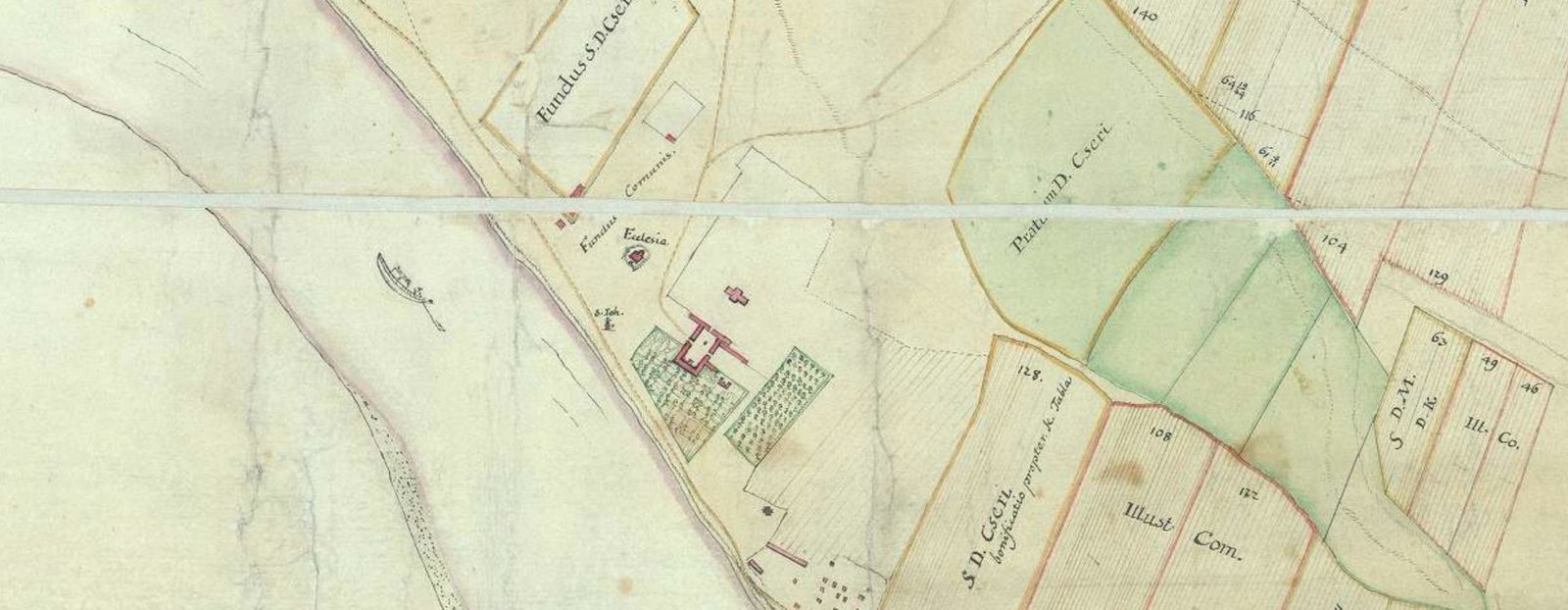 Egy 1750-es évekbeli birtoktérképen pedig jól látszik nemcsak az épület helye, hanem a környezete is: